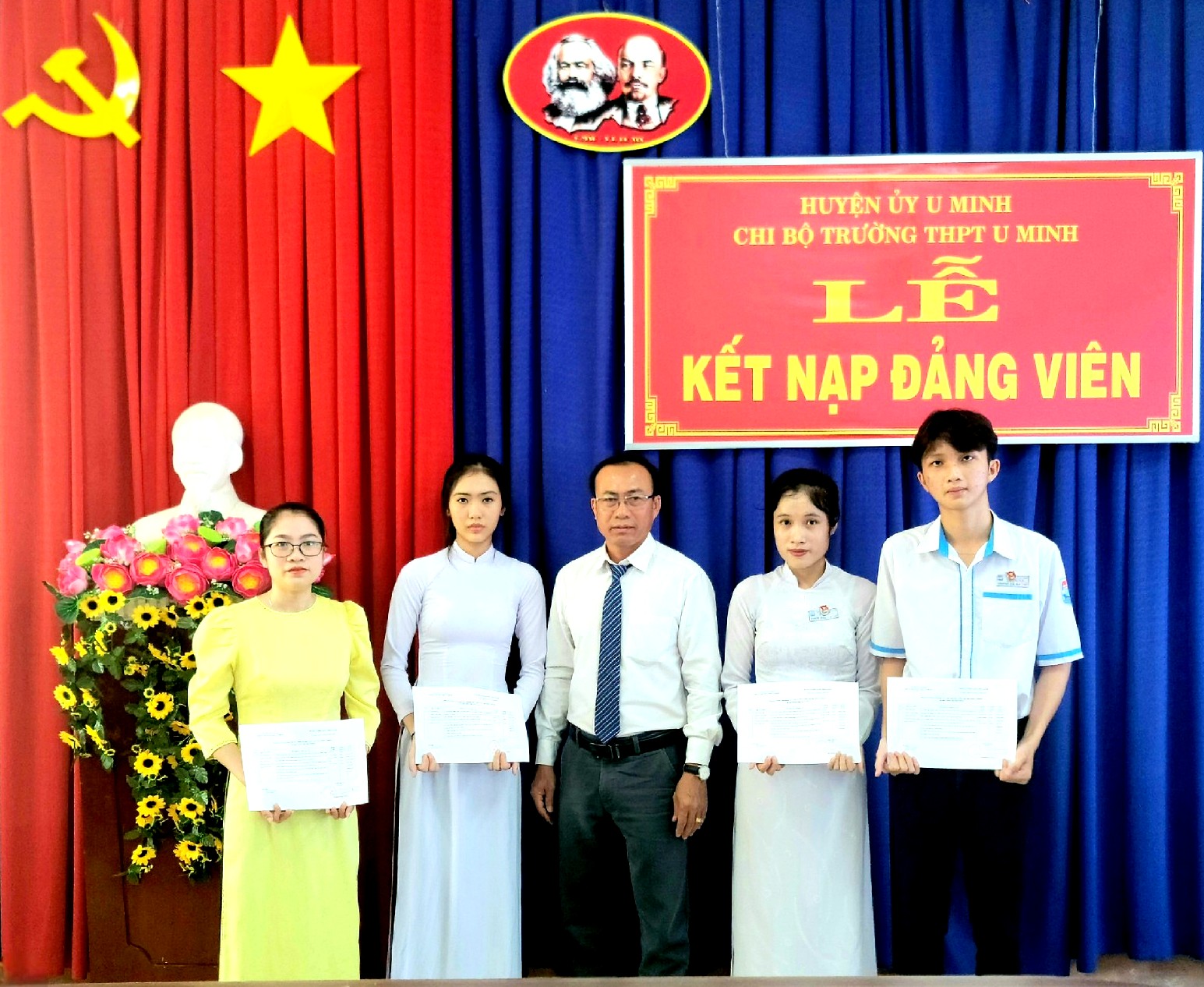 Ngày 04/7, Chi bộ trường THPT U Minh tổ chức kết nạp cho 03 em Quách Triệu Mẩn, Phạm Anh Thi và Nguyễn Trọng Nhân. Buổi lễ kết nạp diễn ra theo đúng quy trình.