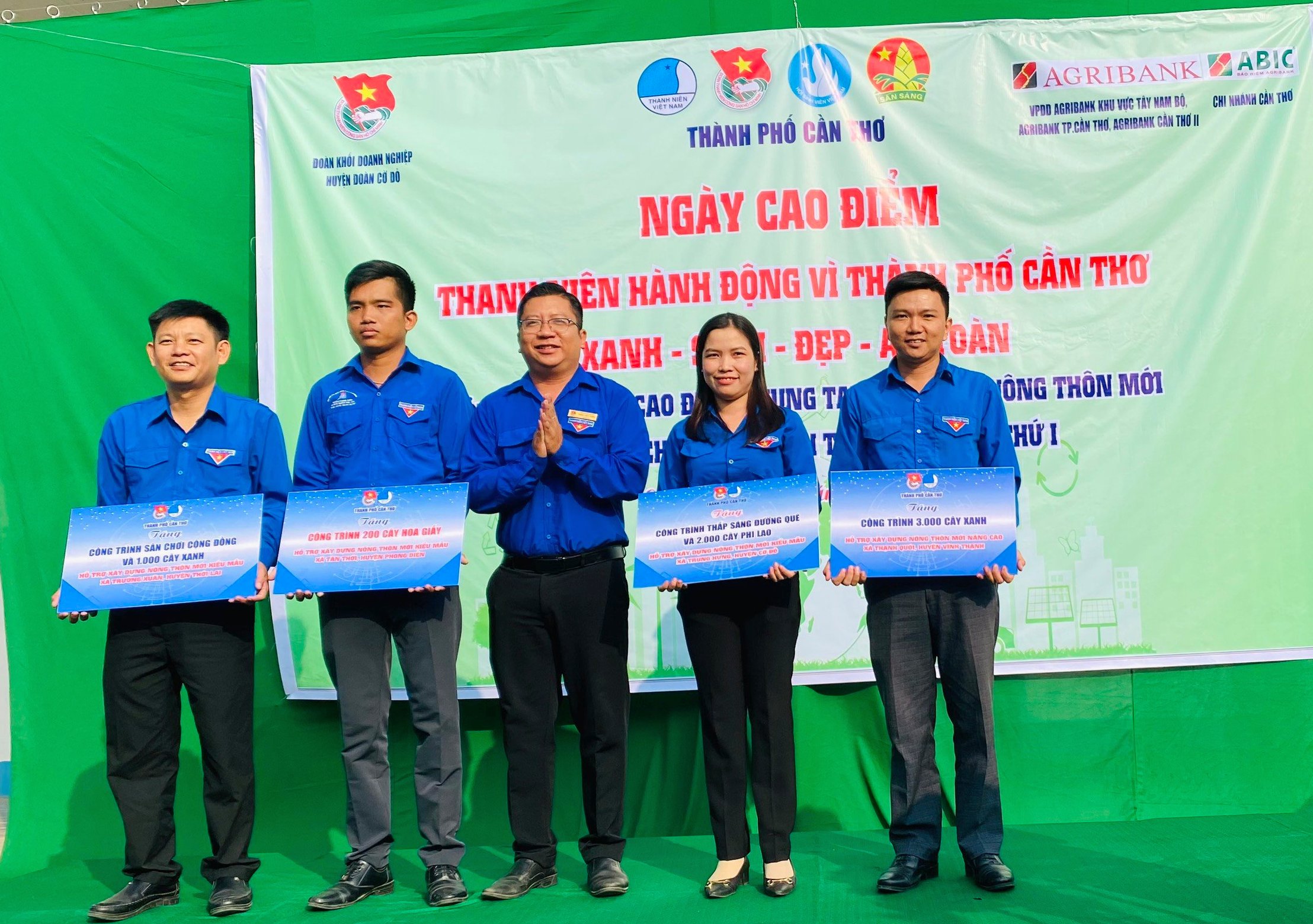 Tại Ngày cao điểm Thành đoàn, Hội LHTN Việt Nam thành phố trao tặng công trình sân chơi cộng đồng và 1.000 cây xanh tại địa bàn xã Trường Xuân huyện Thới Lai; Công trình 3.000 cây xanh tại địa bàn xã Thạnh Quới, huyện Vĩnh Thạnh; Công trình Thắp sáng đường quê và 2.000 cây xanh tại địa bàn xã Trung Hưng, huyện Cờ Đỏ; Công trình trồng 200 cây hoa giấy tại địa bàn xã Tân Thới, huyện Phong Điền.