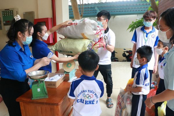 Ngày hội “Thiếu nhi bảo vệ môi trường” do Ðoàn phường Cái Khế (quận Ninh Kiều) phối hợp các liên đội 3 trường tiểu học Cái Khế 1, Cái Khế 2 và Cái Khế 3 tổ chức trong tuần đầu tháng 5-2022, thu hút hơn 2.000 đội viên, thiếu nhi tham gia. Các học sinh thu gom rác thải nhựa, vật liệu phế thải có thể tái chế để tham gia hoạt động “lấy rác đổi quà”. Với 1kg vật liệu phế thải, như: lon bia, chai nhựa, giấy... học sinh có thể quy đổi nhận 1-2 phần quà là sách, vở, cặp da, dụng cụ học tập, nhiều đồ chơi (gấu bông, xe mô hình), cây kiểng… Chỉ trong 2 ngày phát động, liên đội của 3 trường đã thu gom hơn 6 tấn vật liệu phế thải, góp phần bảo vệ môi trường. Vương Tấn Minh, học sinh lớp 5A, Trường Tiểu học Cái Khế 1, chia sẻ: “Từ gần 1 tháng qua, mỗi ngày em đều thu gom chai nhựa, giấy vụn, lon bia của gia đình và một số hộ trong xóm, để một góc riêng để đổi lấy quà. Em đã nhận được 5 món quà (tương đương 5kg vật liệu phế thải - PV)”.