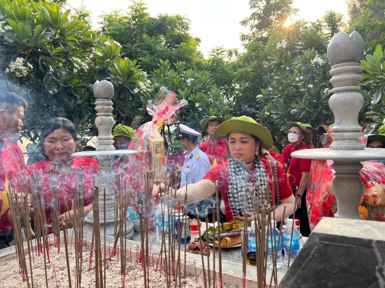 Tham gia Hành trình “Tuổi trẻ vì biển, đảo quê hương” các đại biểu được tham gia nhiều hoạt động mang ý nghĩa thiêng liêng. Trong ảnh: Các đại biểu dâng hương tại Khu tưởng niệm chiến sĩ Gạc Ma, xã Cam Hải Đông, huyện Cam Lâm, tỉnh Khánh Hòa.