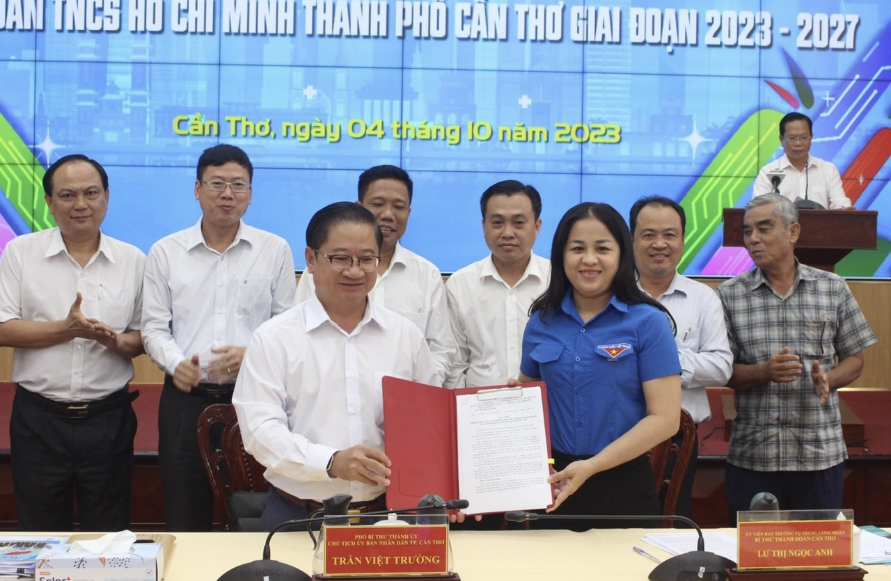 ​Dịp này, UBND thành phố và BCH Đoàn TNCS Hồ Chí Minh thành phố Cần Thơ tiếp tục ký kết Quy chế phối hợp công tác giai đoạn 2023 – 2027, góp phần triển khai thực hiện nhiệm vụ liên quan đến phát triển thanh thiếu nhi thành phố Cần Thơ.