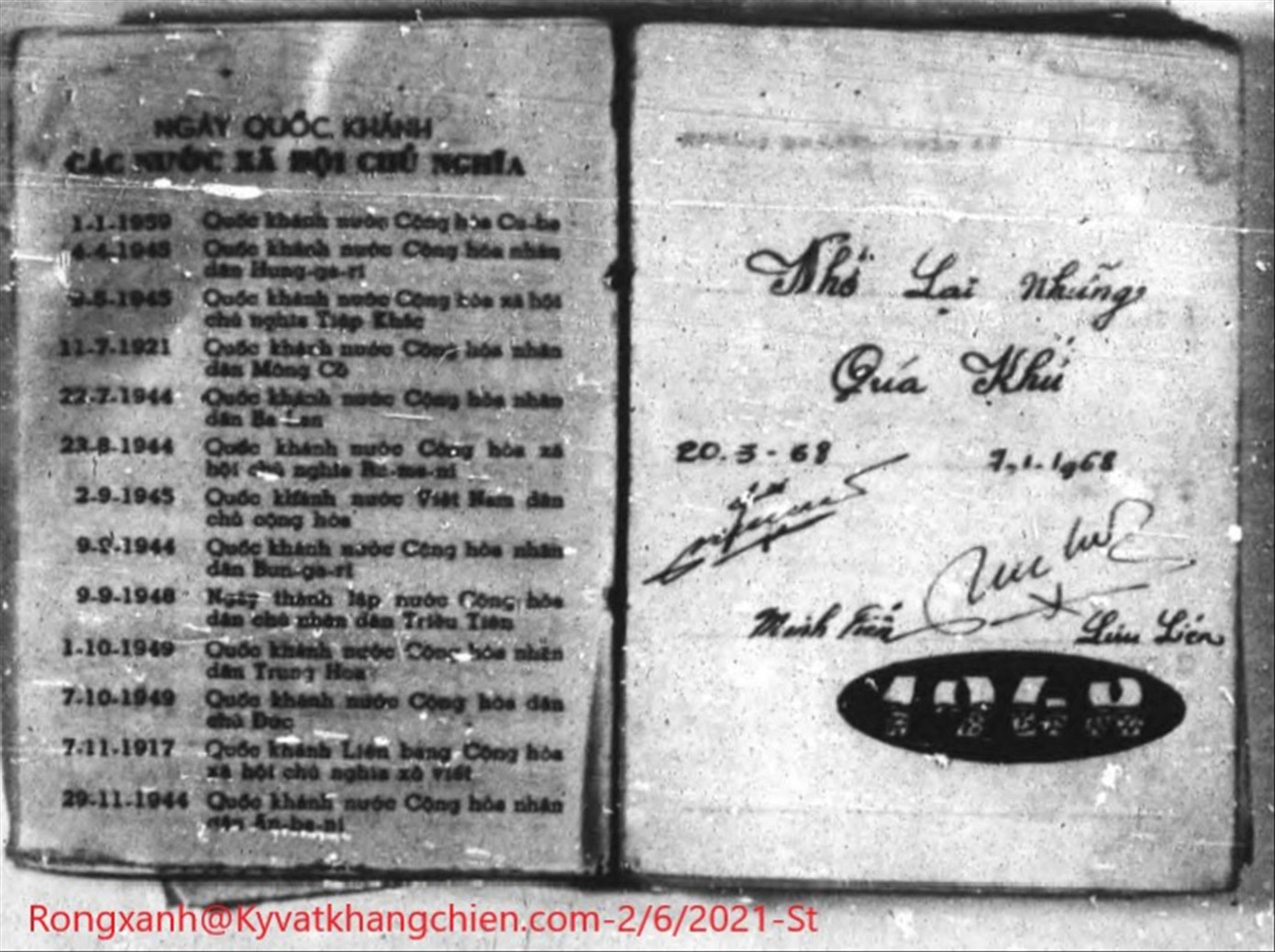 Trang đầu cuốn sổ lịch, phần tên có ghi chữ Minh Tiến, lồng phía trong là chữ Lưu. Các thông tin khác ghi lần lượt ngày sinh, nơi làm việc. Trang phía trong có ghi dòng chữ “Nhớ lại những quá khứ”, kèm chữ ký của hai người là Minh Tiến 20/3/1968, và Lưu Liên 7/1/1968. Theo thông tin mà anh Lâm Hồng Tiên tra soát thêm từ hồ sơ của Đại học công nghệ Texas, cuốn sổ do lính Mỹ thu giữ ngày 31/5/1968 từ các thi thể bộ đội Việt Nam tại khu vực nam QL9, Hướng Hóa- Quảng Trị, sau trận chiến dữ dội từ 10h đến gần 16h.