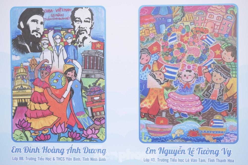 Các bức tranh đã khắc họa sinh động hình ảnh lá cờ hai nước tung bay cùng nhau, nụ cười rạng rỡ của thiếu nhi Việt Nam và Cuba, hình ảnh Bác Hồ và Chủ tịch Fidel Castro bên nhau, cũng như những hoạt động giao lưu văn hóa, thể thao đầy ý nghĩa.