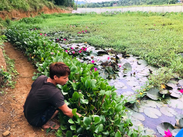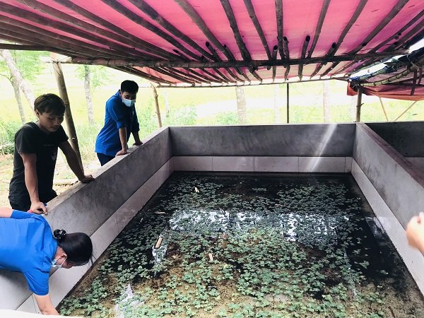 Dẫn chúng tôi thăm quan ao nuôi ốc, Giang cho biết, ốc tuy là loài sống dưới bùn đất nhưng rất ưa sạch. Điều quan trọng nhất phải có nguồn nước sạch. Nếu ao nước bẩn, nước tù đọng ốc dễ bị bệnh chết. Vì thế phải thường xuyên vệ sinh ao, thay nước, xử lý môi trường bằng vôi, men vi sinh.