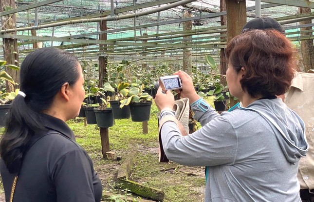 Du khách tham quan vườn ươm hoa Cầm Cù của anh Đỗ Văn Phúc