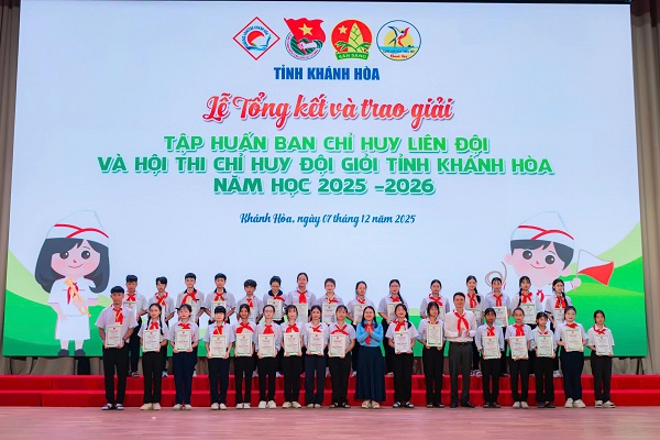 Tại Lễ tổng kết và trao giải, Ban Tổ chức đã trao Giấy chứng nhận danh hiệu Chỉ huy Đội giỏi tỉnh Khánh Hòa năm học 2025 – 2026 và 01 Giải Nhất cho em Trần Khánh An (Liên đội Trưởng Trường THCS Nguyễn Hiền, phường Nam Nha Trang), 02 giải Nhì, 03 giải Ba, 10 giải Khuyến khích cho những thí sinh đạt kết quả cao trong các nội dung thi.