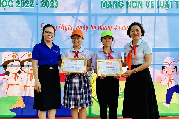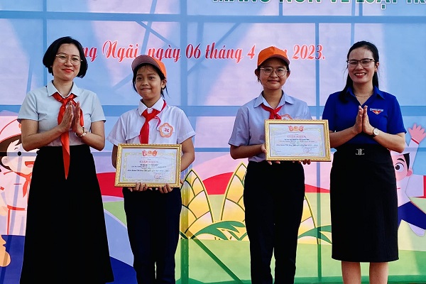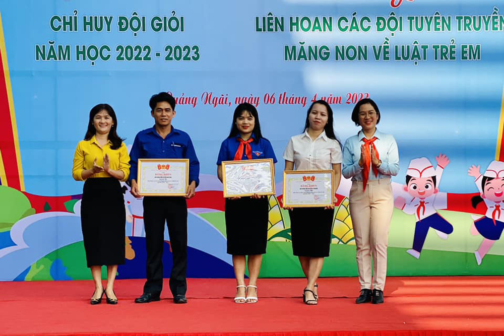 Đồng thời trao giải Liên hoan các Đội tuyên truyền măng non về Luật trẻ em” năm học 2022 – 2023 do Tỉnh đoàn, Hội đồng Đội tỉnh tổ chức. Giải nhất thuộc về Hội đồng Đội TP.Quảng Ngãi, ngoài ra còn có 1 giải nhì, 2 giải ba và 7 giải ấn tượng cho các đơn vị hội đồng đội khác.