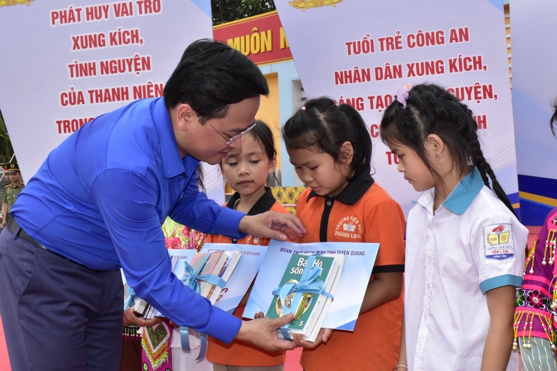 Trung ương Đoàn trao bảng hỗ trợ các nguồn lực cho Tỉnh đoàn Tuyên Quang với tổng trị giá 752 triệu đồng gồm: 02 nhà Hạnh phúc trị giá 160 triệu đồng, 02 tivi tặng công an xã và 01 tivi chính quyền xã trị giá 45 triệu đồng, 01 bể bơi di động và 200 áo phao trị giá 120 triệu đồng, 05 nhà vệ sinh cho em trị giá 350 triệu đồng, 02 tủ sách tặng trường Tiểu học và trường THCS Thành Long, huyện Hàm Yên trị giá 77,5 triệu đồng.