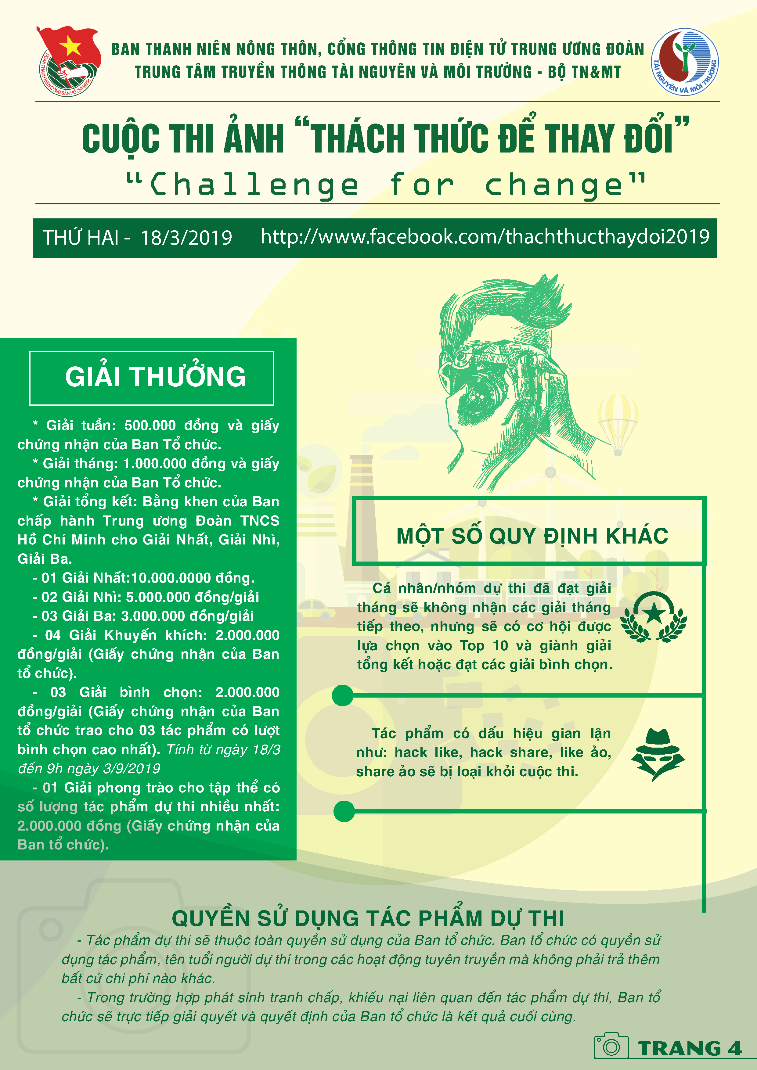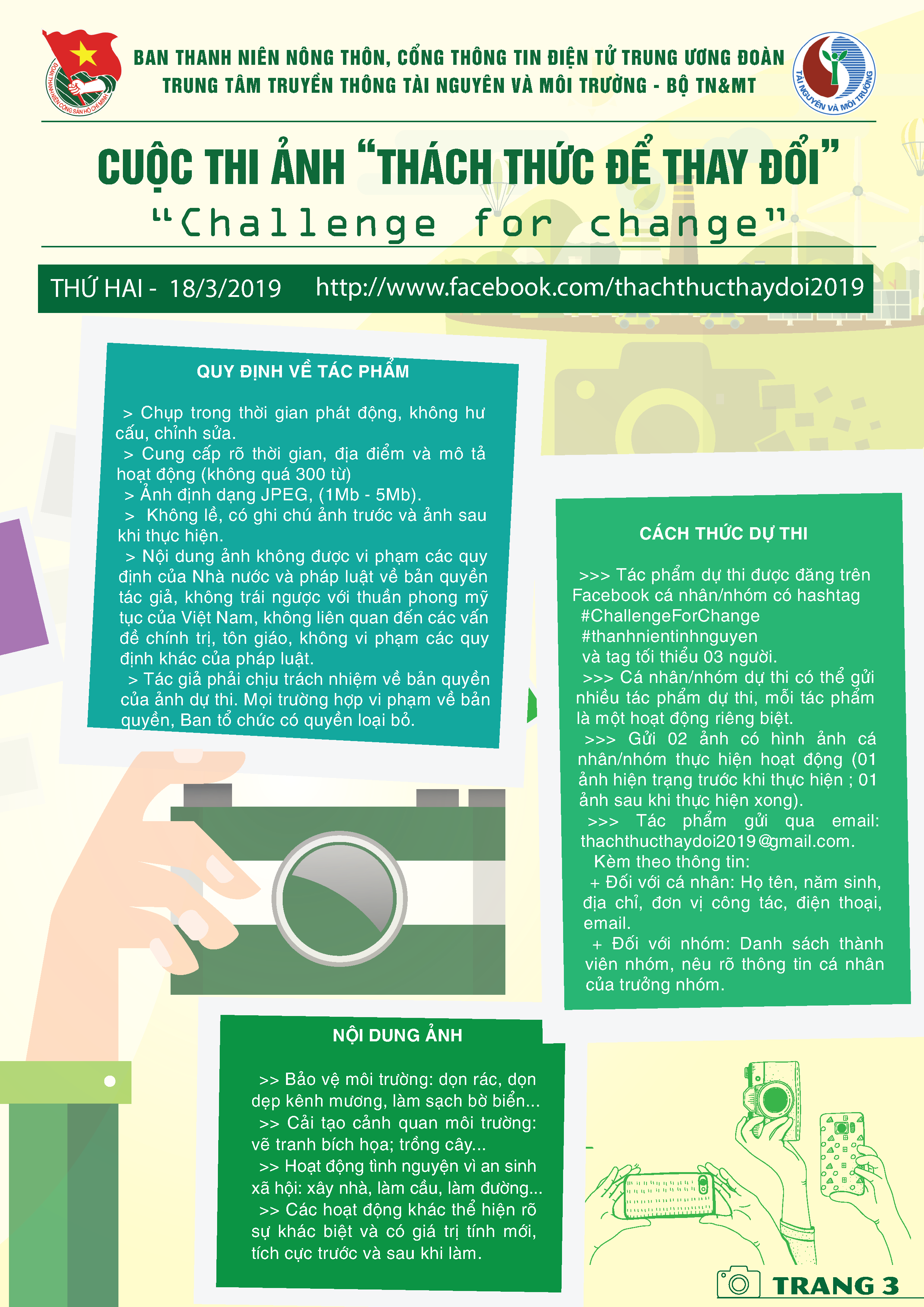 Cuộc thi do Ban Thanh niên Nông thôn phối hợp với Cổng Thông tin điện tử Trung ương ĐoànTrung ương Đoàn và Trung tâm truyền thông tài nguyên và môi trường - Bộ Tài nguyên và Môi trường tổ chức từ ngày 18/3 đến 2/8/2019.