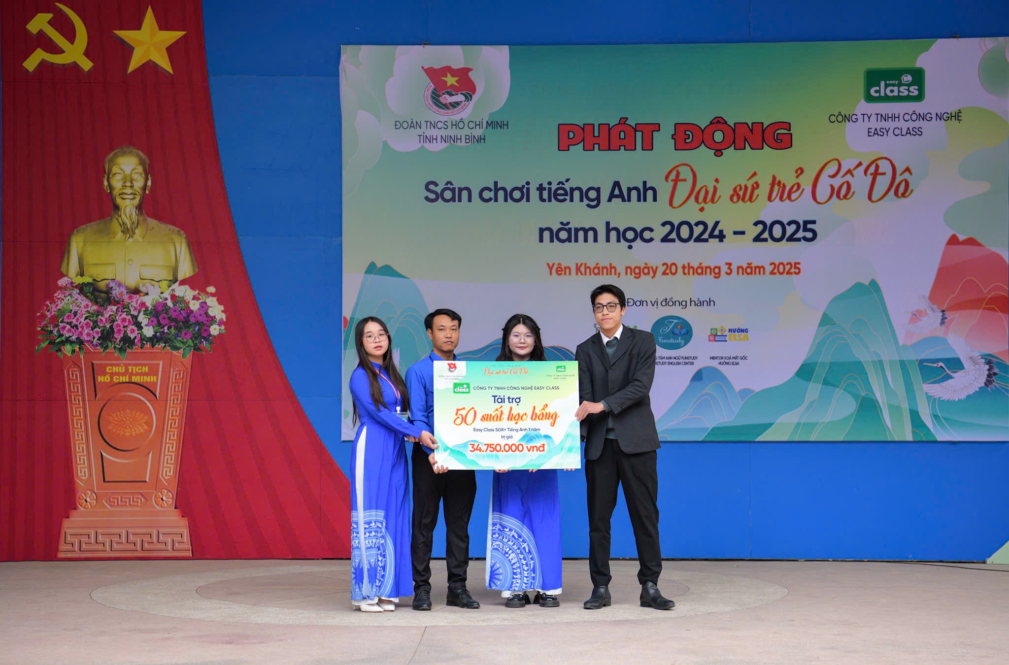 Tại chương trình, Ban Tổ chức đã dành tặng 05 suất quà cho các em có hoàn cảnh khó khăn vượt khó học tập tốt và đại diện Công ty TNHH Công nghệ Giáo dục Easy Class trao tặng 50 suất học bổng tiếng Anh cho Trường THPT Yên Khánh A.