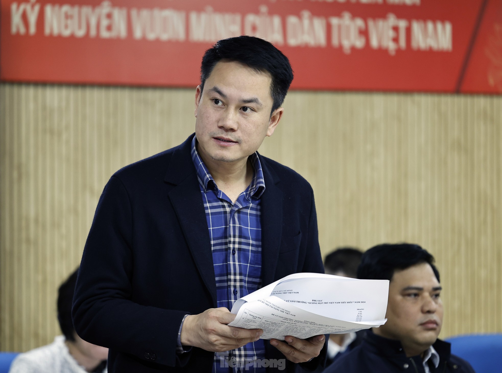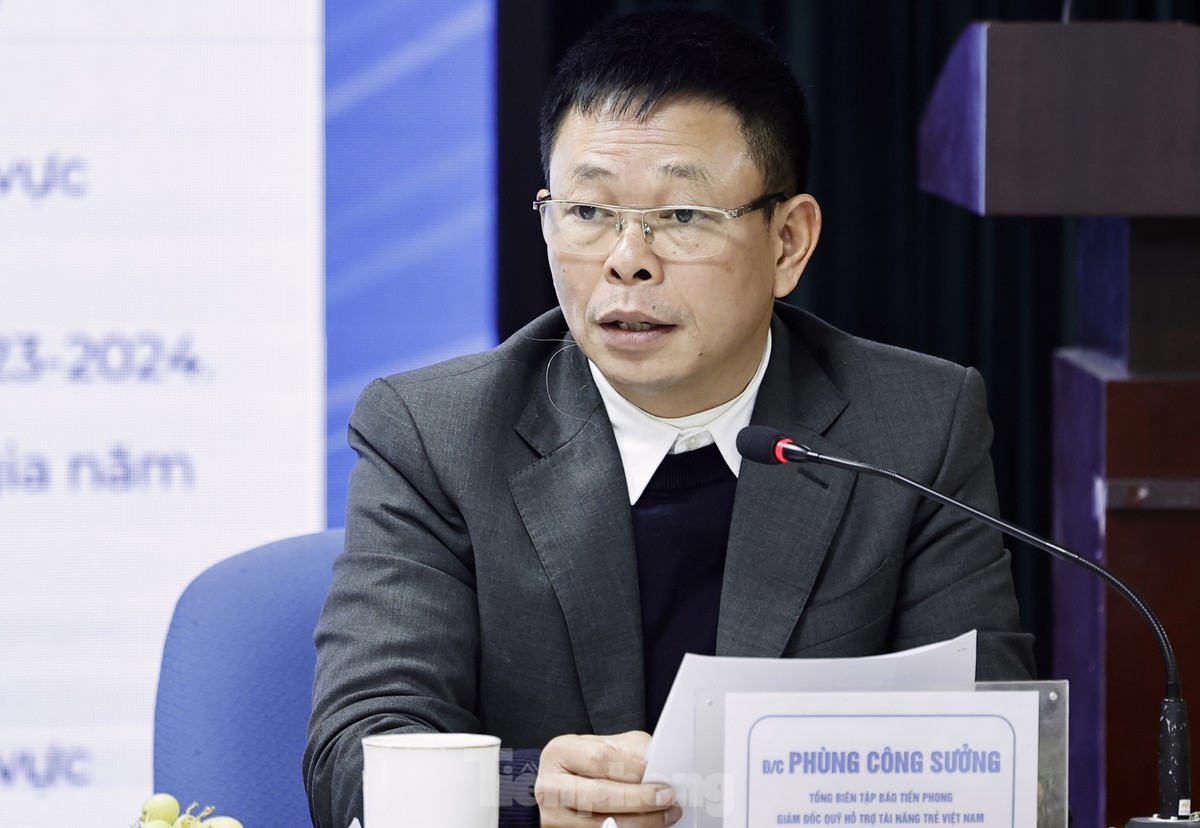 Thay mặt đơn vị thường trực Giải thưởng Gương mặt trẻ Việt Nam tiêu biểu năm 2024, Nhà báo Phùng Công Sưởng, Tổng biên tập báo Tiền Phong, Giám đốc Quỹ Hỗ trợ Tài năng trẻ Việt Nam, báo cáo công tác triển khai, tập hợp, phân tích dữ liệu hồ sơ các đề cử.