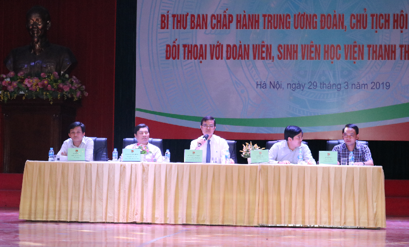 Chủ tịch Hội Sinh viên Việt Nam Bùi Quang Huy, Hội đồng Học viện và đại diện các ban, đơn vị Trung ương Đoàn trao đổi với sinh viên