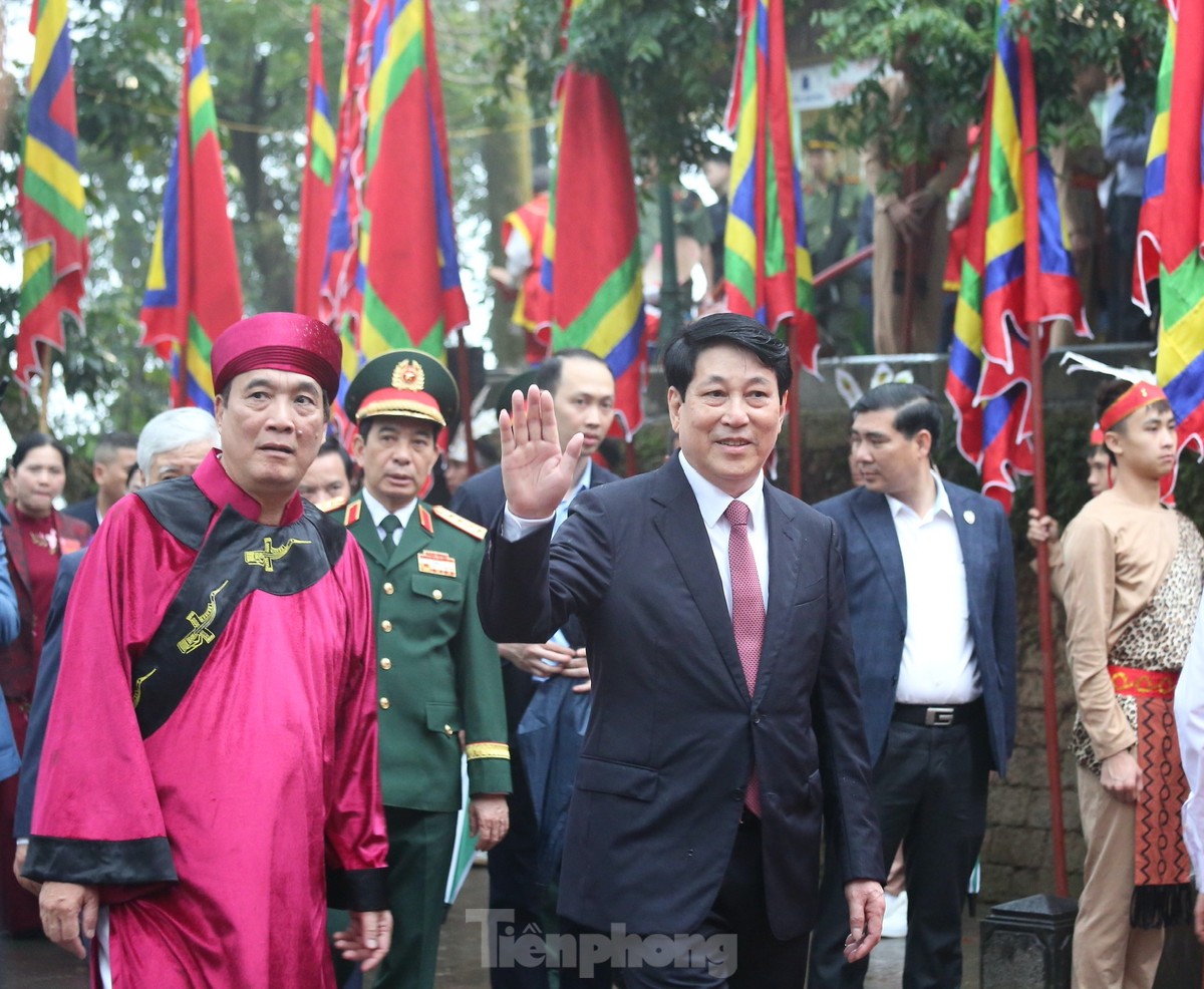 Tại Điện Kính Thiên, trên đỉnh núi Nghĩa Lĩnh ngút ngàn linh khí - nơi thờ tự các Vua Hùng đã có công dựng nước; nơi hội tụ hồn thiêng sông núi - cội nguồn của dân tộc Việt Nam, Chủ tịch nước Lương Cương cùng các lãnh đạo Đảng, Nhà nước và lãnh đạo địa phương vào dâng hương, hoa, bày tỏ lòng biết ơn sâu sắc các bậc tiền nhân đã có công dựng nước để con cháu nối tiếp truyền thống Lạc Hồng, xây dựng đất nước Việt Nam giàu đẹp, văn minh như ngày hôm nay.