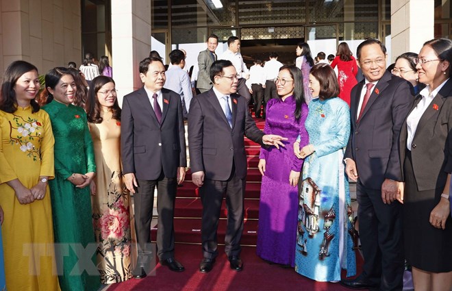 Chủ tịch Quốc hội Vương Đình Huệ với đại biểu. (Ảnh: Doãn Tấn/TTXVN)