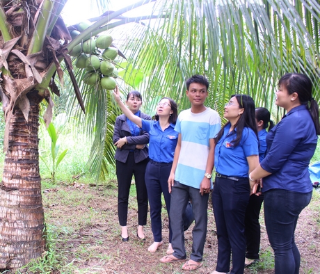 Đoàn công tác Trung ương Đoàn tham quan mô hình kinh tế của anh Huỳnh Thanh Sang (xã Phú Quới) |
