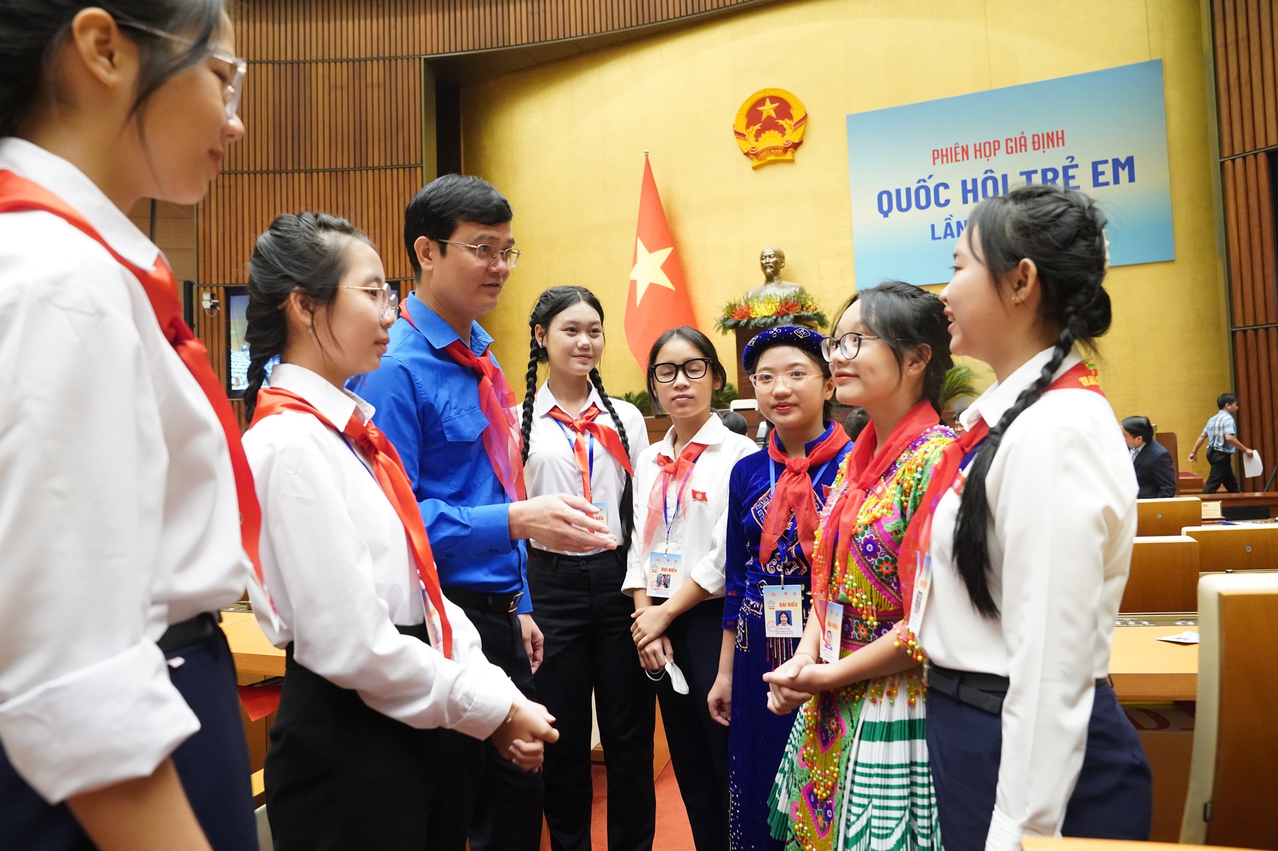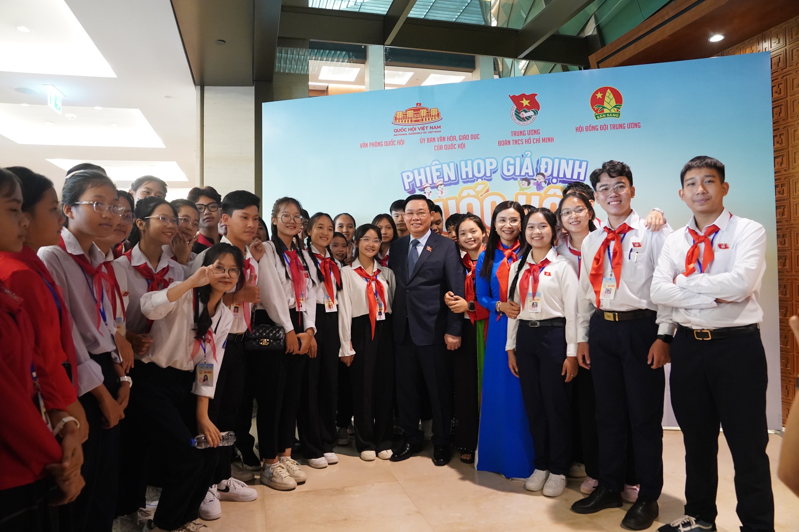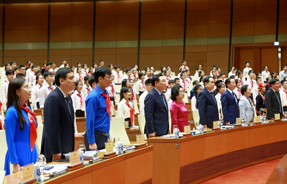 Thay mặt Ban Bí thư T.Ư Đoàn, Thường trực Hội đồng Đội T.Ư và các đơn vị tổ chức Phiên họp, đồng chí Bùi Quang Huy - Ủy viên dự khuyết T.Ư Đoàn, Bí thư thứ nhất T.Ư Đoàn trân trọng cảm ơn Chủ tịch Quốc hội Vương Đình Huệ đã dành tình cảm đặc biệt tới trẻ em và ủng hộ cao chủ trương tổ chức Phiên họp giả định Quốc hội trẻ em lần thứ nhất, năm 2023. Đặc biệt, Chủ tịch Quốc hội đã dự và phát biểu chỉ đạo động viên đại biểu thiếu nhi tham gia Phiên họp.