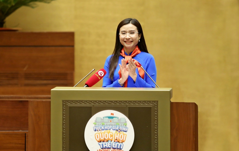 Phát biểu tại chương trình, đồng chí Nguyễn Phạm Duy Trang - Bí thư T.Ư Đoàn, Chủ tịch Hội đồng Đội T.Ư, Trưởng ban tổ chức Phiên họp cho biết, vinh dự nhận được sự quan tâm của Chủ tịch Quốc hội Vương Đình Huệ, T.Ư Đoàn, Hội đồng Đội T.Ư phối hợp với Ủy ban Văn hóa giáo dục và Văn phòng Quốc hội tổ chức phiên họp giả định Quốc hội trẻ em lần thứ I, năm 2023 - một hoạt động rất ý nghĩa trước thềm Hội nghị Nghị sĩ trẻ toàn cầu lần thứ 9 do Quốc hội Việt Nam đăng cai.