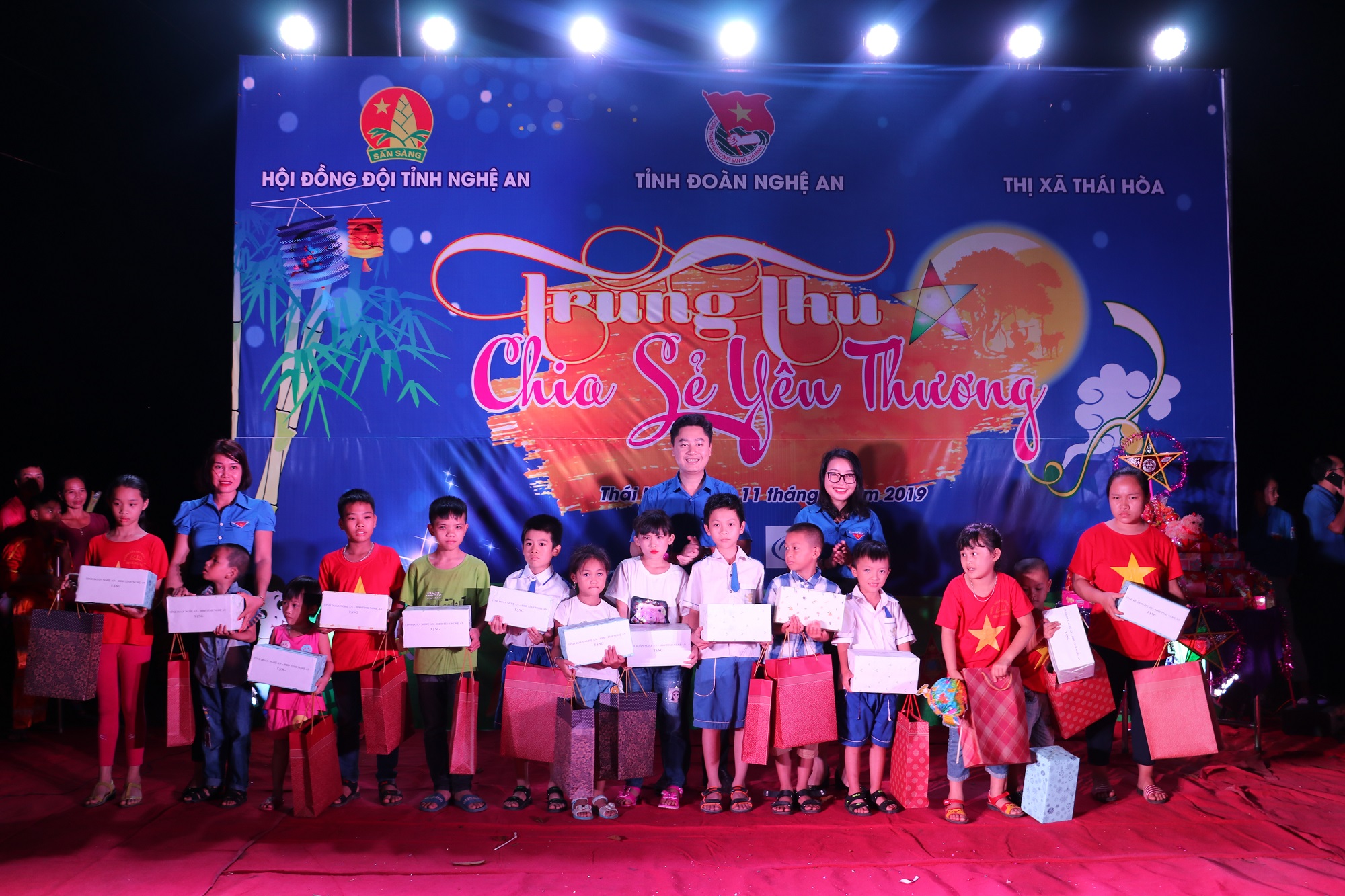 Tối ngày 11/9, Tỉnh đoàn, Hội đồng Đội tỉnh Nghệ An phối hợp với Thị xã Thái Hòa tổ chức chương trình “Trung thu chia sẻ yêu thương” năm 2019 tại nhà văn hóa xóm 4, xã Nghĩa Tiến, thị xã Thái Hòa.