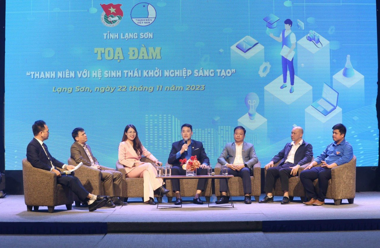Chiều cùng ngày đã diễn ra Tọa đàm “Thanh niên với hệ sinh thái khởi nghiệp sáng tạo” với sự tham gia của anh Nguyễn Tiến Dũng, Phó Tổng Biên tập Tạp chí Diễn đàn Doanh nghiệp; chị Mentor Jenny Nguyễn, Chủ tịch Học viện Kinh doanh AZ, Trưởng làng AI Techfest; anh Nguyễn Văn Dũng - Chủ tịch HĐQT Pmax Group, Chủ tịch CLB Doanh nhân trẻ YBC, Trưởng làng Cộng đồng Techfest; lãnh đạo Tỉnh đoàn, Sở Khoa học và Công nghệ, Chi nhánh Ngân hàng chính sách xã hội tỉnh, Sở Công thương, CLB Đầu tư và Khởi nghiệp tỉnh và các thanh niên phát triển kinh tế tiêu biểu.