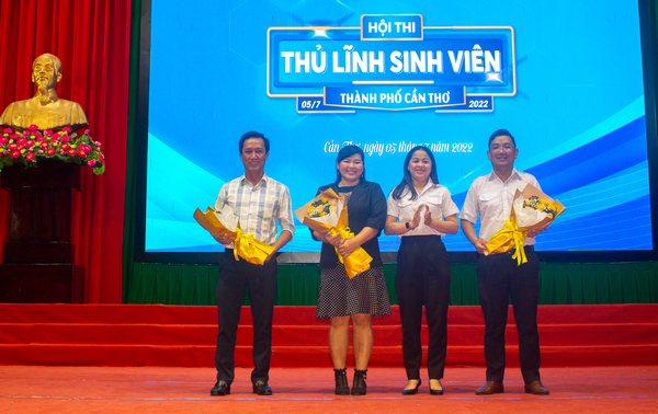 Đồng chí Lư Thị Ngọc Anh - Ủy viên Ban Thường vụ Trung ương Đoàn, Uỷ viên Ban Thư ký TW Hội Sinh viên Việt Nam, Bí thư Thành đoàn Cần Thơ, Chủ tịch Hội sinh viên Việt Nam thành phố Cần Thơ tặng hoa ban giám khảo tham gia hội thi.