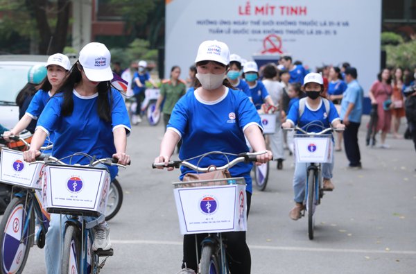 Kết thúc lễ mít-tinh là phần diễu hành xe đạp của các đại biểu cùng cùng 80 sinh viên trường Đại học Y tế Công cộng nhằm hưởng ứng chiến dịch truyền thông năm 2020 với chủ đề "Bỏ thuốc lá để giảm nguy cơ mắc Covid-19".