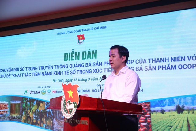 Chiều 16.9, tại Hà Tĩnh, T.Ư Đoàn phối hợp với Tỉnh đoàn Hà Tĩnh, Hội LHTN Việt Nam tỉnh và các đơn vị tổ chức diễn đàn Chuyển đổi số trong truyền thông quảng bá sản phẩm OCOP (Chương trình mỗi xã một sản phẩm) của thanh niên.