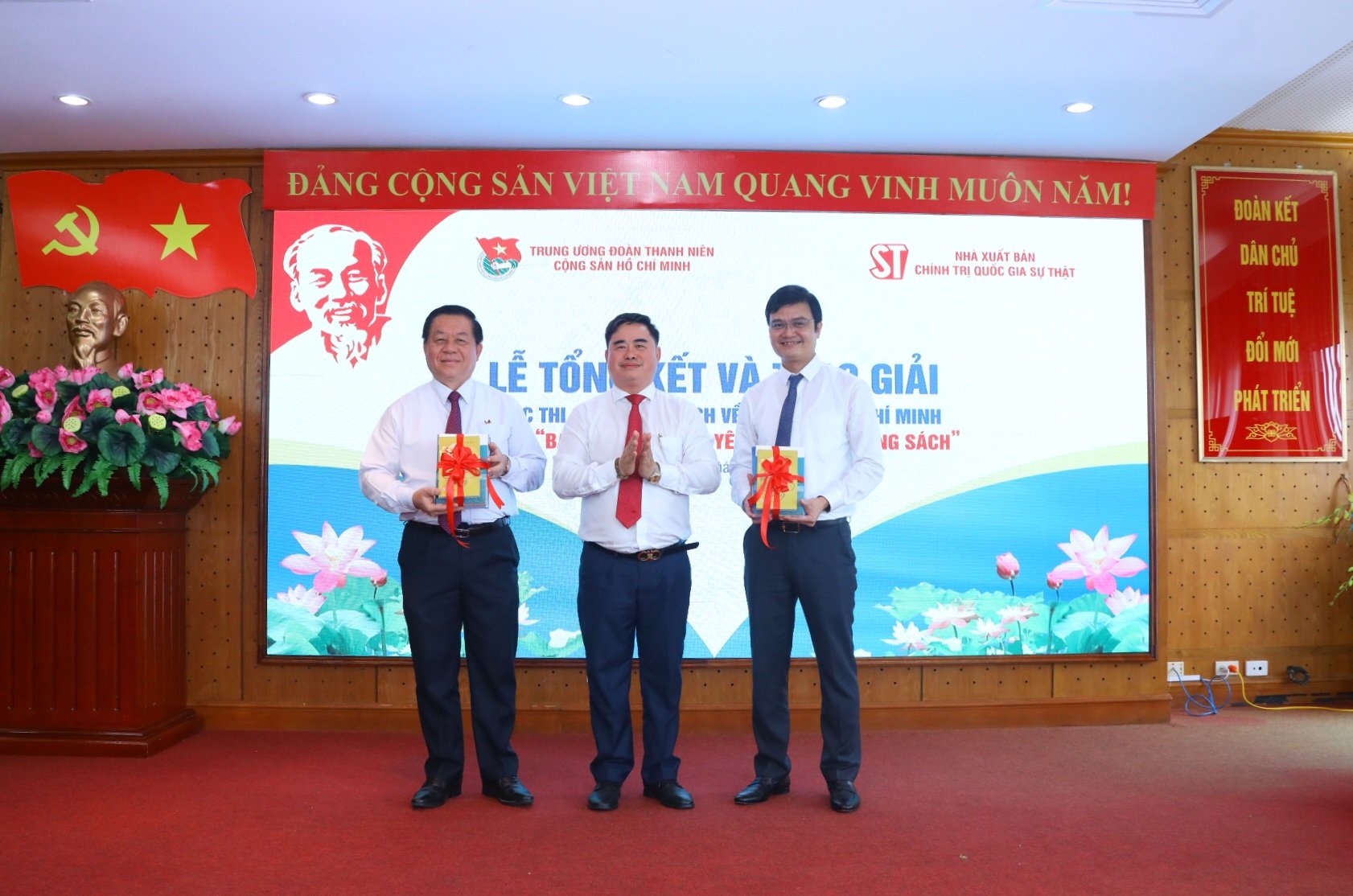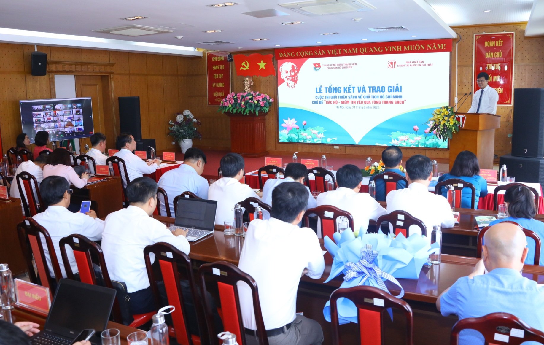 Sáng ngày 31/8, Nhà xuất bản Chính trị quốc gia Sự thật phối hợp với T.Ư Đoàn tổ chức lễ tổng kết và trao giải cuộc thi Giới thiệu sách về Chủ tịch Hồ Chí Minh với chủ đề: “Bác Hồ - Niềm tin yêu qua từng trang sách” năm 2022.