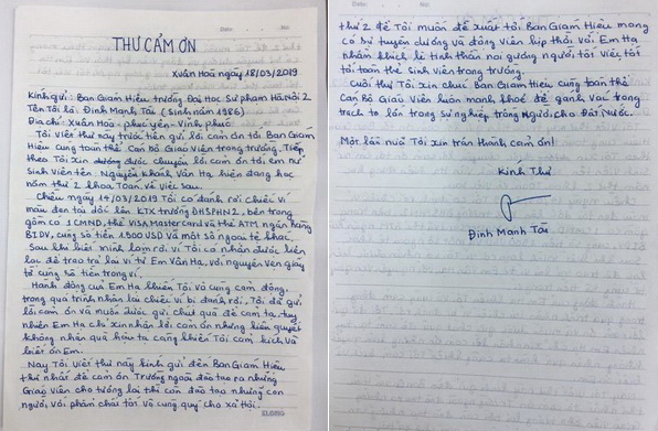 Lá thư của anh Tài gửi đến nhà trường |