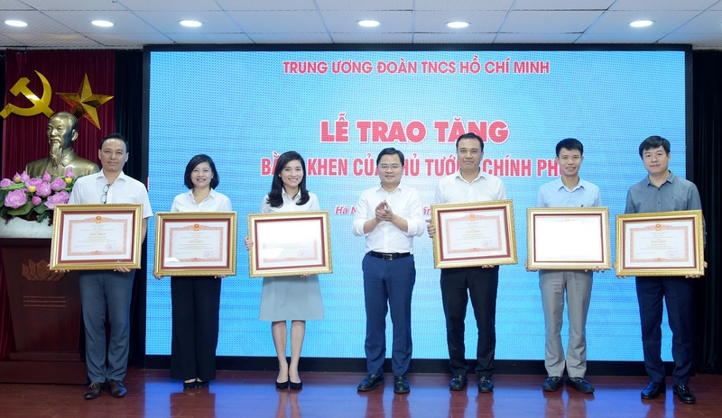 Bí thư thứ nhất T.Ư Đoàn Nguyễn Anh Tuấn trao Bằng khen của Thủ tướng Chính phủ cho 06 tập thể có thành tích xuất sắc trong công tác phòng, chống dịch Covid -19