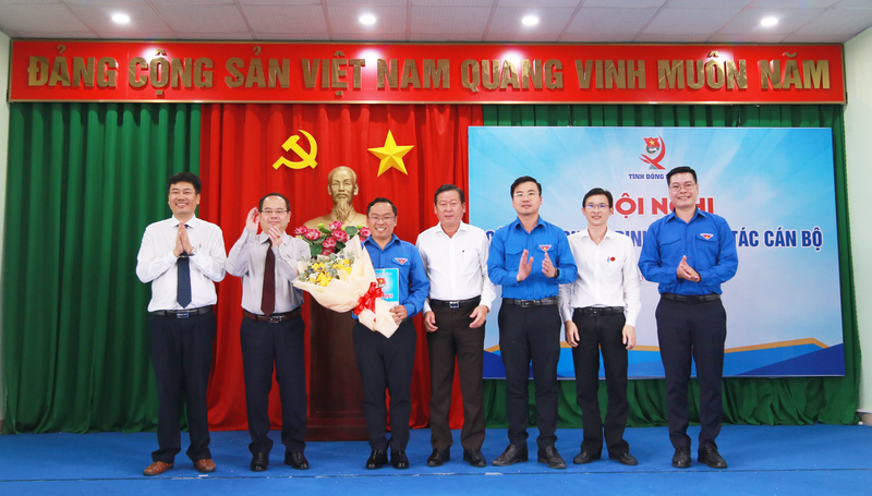 Các đồng chí lãnh đạo Trung ương Đoàn, Tỉnh ủy tặng hoa chúc mừng đồng chí Nguyễn Minh Kiên - Bí thư Tỉnh đoàn Đồng Nai khóa IX