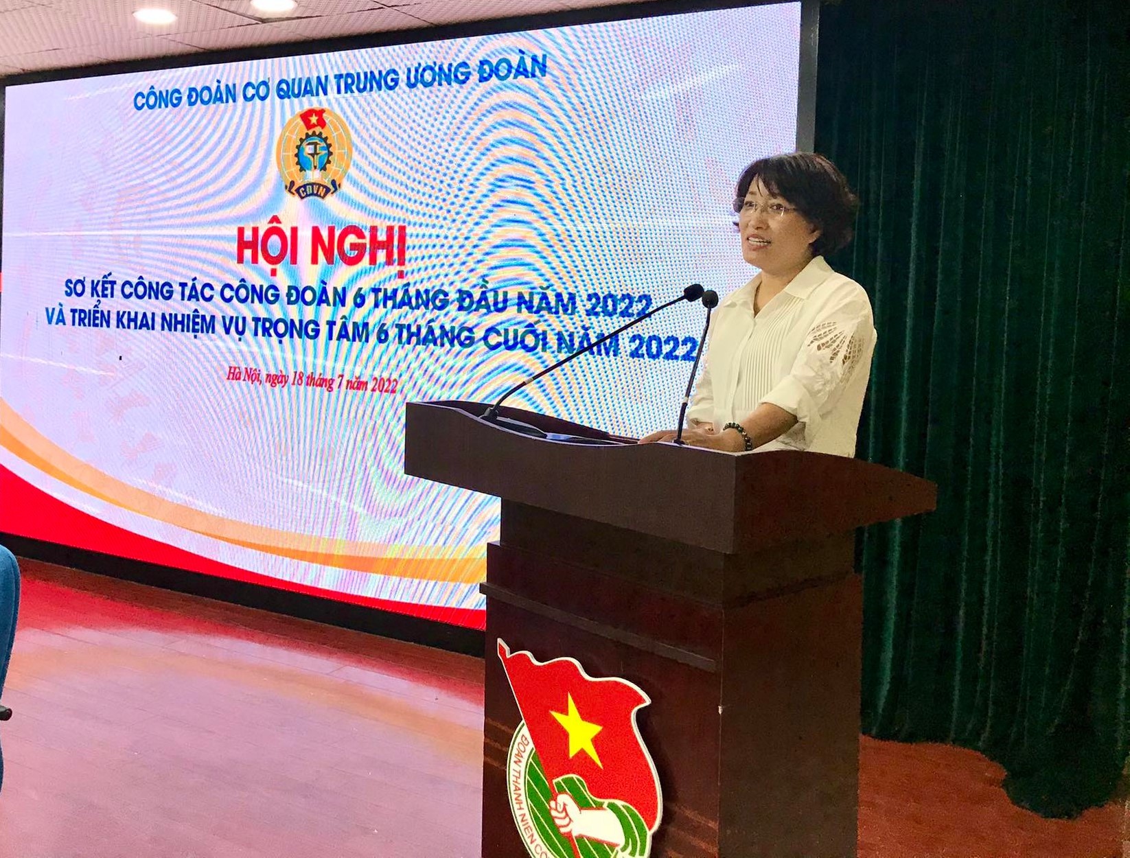 Phát biểu tại hội nghị, đồng chí Lê Hồng Hạnh, Chủ tịch Công Đoàn cơ quan Trung ương Đoàn cho rằng 6 tháng đầu năm 2022 trong bối cảnh khẩn trương khắc phục hậu quả của dịch Covid 19, được sự quan tâm định hướng, chỉ đạo quyết liệt sát sao của Thủ trưởng, Đảng ủy cơ quan Trung ương Đoàn, công đoàn cơ quan đã cơ bản hoàn thành tốt các nhiệm vụ theo kế hoạch đề ra và đạt một số kết quả rất đáng ghi nhận.