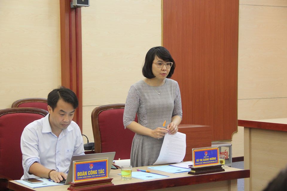 Kết luận buổi làm việc, đồng chí Vũ Thị Giáng Hương - UV BTV, Trưởng Ban TN Công nhân và Đô thị Trung ương Đoàn đánh giá cao sự nỗ lực, cố gắng trong công tác Đoàn và phong trào thanh thiếu nhi toàn tỉnh trong thời gian qua, nhất là khi dịch bệnh Covid-19 xảy ra trên địa bàn tỉnh. Đồng chí cũng đề nghị Ban Thường vụ Tỉnh đoàn tiếp tục chỉ đạo các cơ sở Đoàn tập trung thực hiện các nhiệm vụ trọng tâm như tổ chức chiến dịch thanh niên tình nguyện hè 2020, tổ chức các hoạt động hè 2020, nắm bắt tình hình hình dư luận thanh niên đối với đại hội Đảng các cấp nhiệm kỳ 2020-2025, xây dựng các công trình, phần việc thanh niên chào mừng đại hội Đảng các cấp nhiệm kỳ 2020-2025; quan tâm hơn nữa trong việc xây dựng tổ chức Đoàn, nâng cao chất lượng cán bộ Đoàn; tăng cường công tác kiểm tra, giám sát; lựa chọn, xác định rõ nội dung trọng tâm để triển khai thực hiện trong 6 tháng cuối năm 2020.