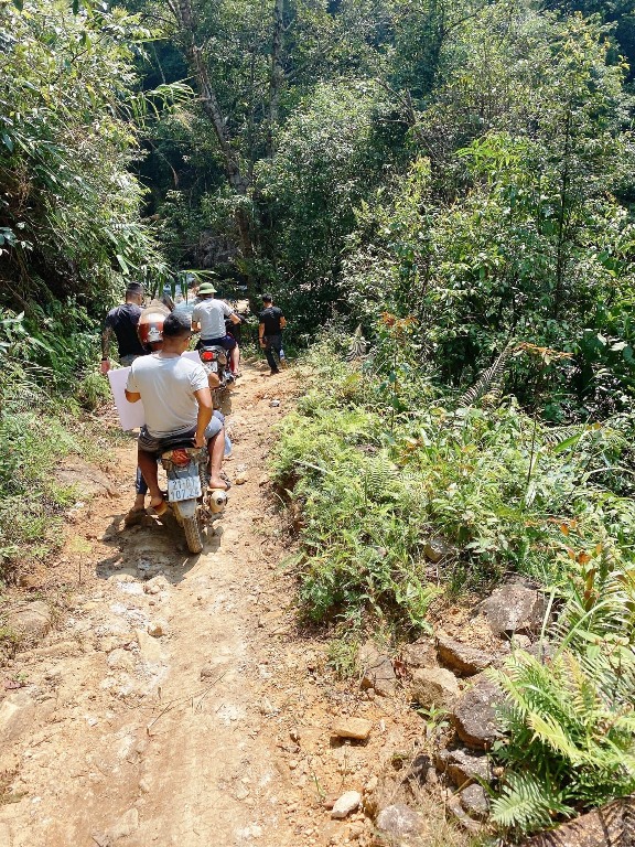 Con đường vào bản sao mà giống con đường vào xã trước đây đến thế? May mắn cho đoàn chúng tôi là trời nắng đẹp, vì nếu chỉ cần hôm trước có một trận mưa thôi là hành trình vượt qua con đường vào xã sẽ trở nên vô cùng gian nan; thậm chí không thể vào được vì nhiều chỗ xe máy phải vượt qua suối với lớp đá cuội gập nghềnh bên dưới, nước từ khe chảy ra trắng xóa, nếu mưa sẽ vô cùng nguy hiểm vì nguy cơ xảy ra lũ ống, lũ quét từ những khe suối như thế này là rất cao.