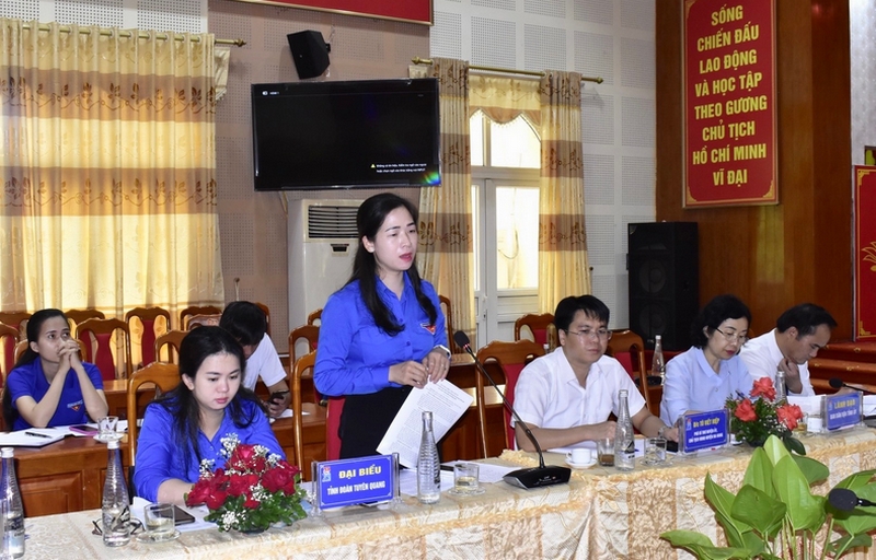 Đồng chí Dương Minh Nguyệt - Bí thư Tỉnh đoàn, Chủ tịch Hội LHTN Việt Nam tỉnh Tuyên Quang phát biểu tại hội nghị