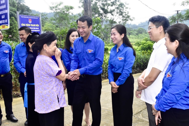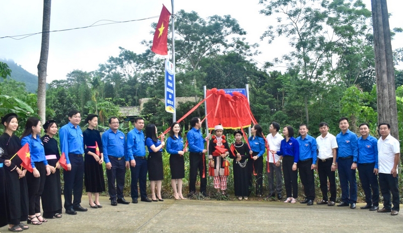 Bí thư Trung ương Đoàn Ngô Văn Cương cùng các đại biểu khánh thành công trình thanh niên sáng, xanh, sạch đường quê và thăm hỏi bà con nhân dân./.