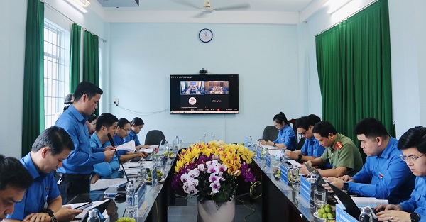Quang cảnh điểm cầu tại Tỉnh đoàn theo hình thức trực tuyến