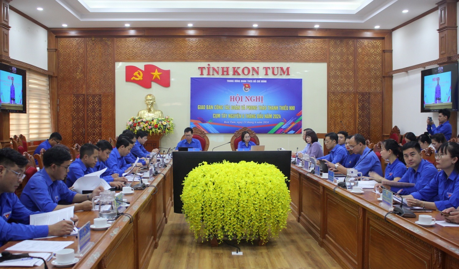 Tại điểm cầu Cụm Tây Nguyên có đồng chí Bùi Thị Vui – Phó Trưởng Ban Thường trực Dân vận Tỉnh uỷ; đồng chí Nguyễn Văn Lân – UV.BTV Tỉnh ủy, Giám đốc Sở Nội vụ; đại diện Lãnh đạo các ban chuyên môn, đơn vị trực thuộc Trung ương Đoàn; đại diện Thường trực Tỉnh đoàn, Lãnh đạo các ban chuyên môn, đơn vị trực thuộc các Tỉnh đoàn trong Cụm Tây Nguyên.
