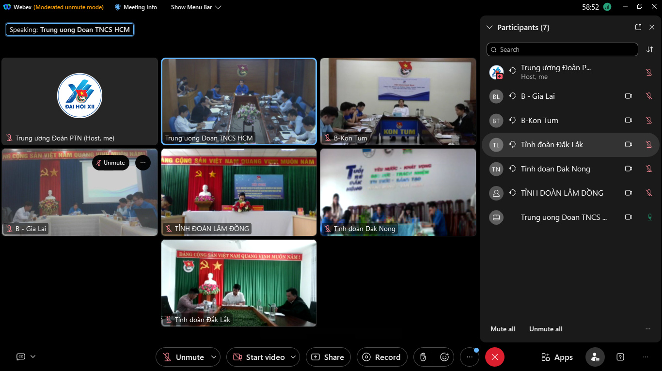Hội nghị diễn ra theo hình thức trực tuyến kết nối điểm cầu Trung ương Đoàn với 05 điểm cầu các đơn vị Cụm Tây Nguyên gồm: Lâm Đồng, Đắk Lắk, Đắk Nông, Gia Lai, Kon Tum.