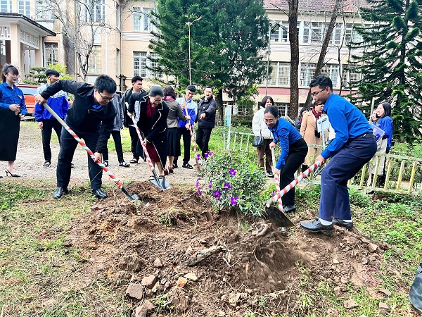 Nhân dịp này, đại diện lãnh đạo Trung ương Đoàn và các Tỉnh đoàn trong Cụm đoàn Tây Nguyên đã trồng cây Mua lưu niệm trong khuôn viên nhà trường.