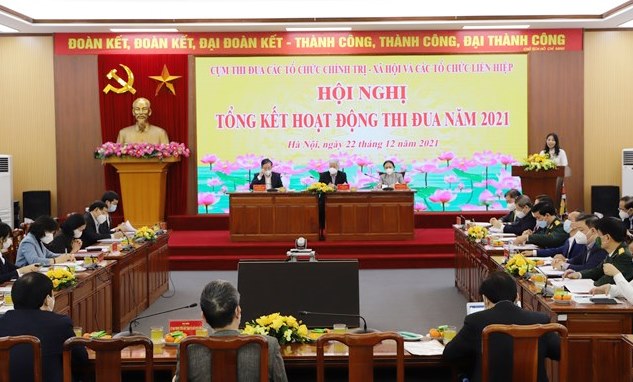 Chiều 22/12, tại Hà Nội, Cụm thi đua các tổ chức chính trị - xã hội và các tổ chức Liên hiệp đã tổ chức Hội nghị Tổng kết hoạt động thi đua năm 2021. Các đồng chí: Đỗ Văn Chiến, Bí thư Trung ương Đảng, Chủ tịch UBTƯ MTTQ Việt Nam; Lương Quốc Đoàn, Ủy viên Trung ương Đảng, Chủ tịch Hội Nông dân Việt Nam; Nguyễn Phương Nga, Chủ tịch Liên hiệp các Tổ chức Hữu nghị Việt Nam chủ trì Hội nghị.