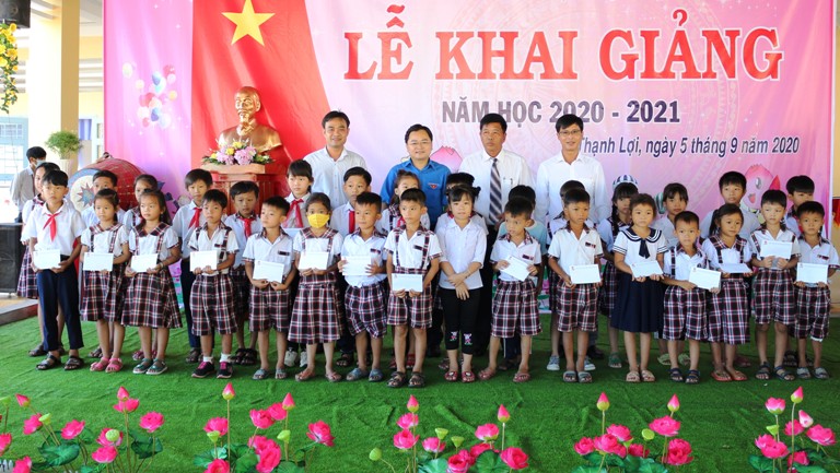 Cũng nhân dịp này, Thường trực Tỉnh đoàn Đồng Tháp đã tham dự Lễ khai giảng tại các điểm trường Tiểu học Thạnh Lợi 2 và trường THCS Thạnh Lợi; đồng thời thay mặt T.Ư Hội LHTN Việt Nam, Hội đồng Đội Trung ương gửi trao tặng các trường 50 suất quà (mỗi suất trị giá 500.000 đồng gồm ba lô, vở học sinh, bộ dụng cụ học tập), 10 suất học bổng (mỗi suất gồm 01 triệu đồng) cho các em học sinh. Đây là sự động viên, khích lệ giúp các em vượt qua khó khăn để vươn lên và thực hiện ước mơ của mình.