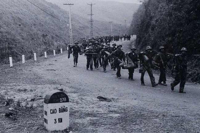 Bộ đội ta hành quân ở Cao Bằng vào ngày 25/2/1979. Hình ảnh trên báo QĐND.