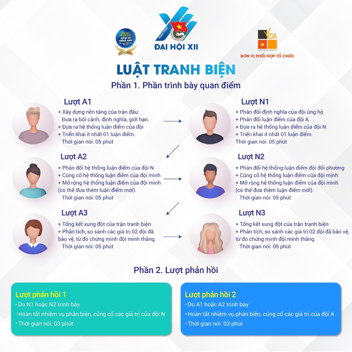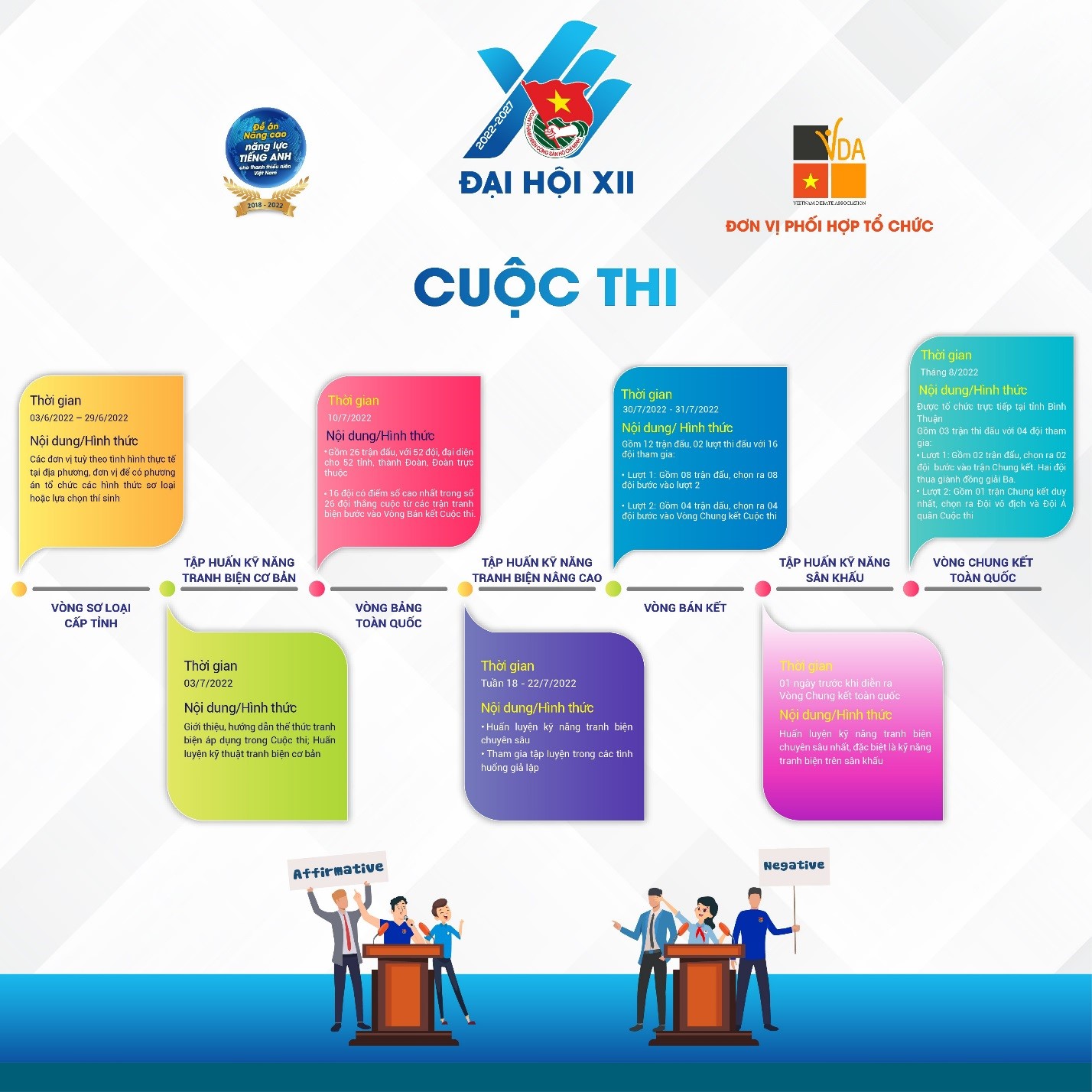 Sáng ngày 10/7/2022, Ban Quốc tế phối hợp với Liên đoàn Tranh biện Việt Nam tổ chức Vòng bảng toàn quốc Cuộc thi với 26 trận đấu (52 đội thi đấu). Đề bài chung của 26 trận là “This house would continue online learning and working even post Covid-19 pandemic” (Dịch: Chúng ta nên tiếp tục việc học tập và làm việc trực tuyến, kể cả sau đại dịch Covid-19).