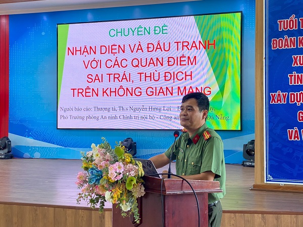 Đồng chí Thượng tá Nguyễn Hưng Lợi, Phó Trưởng phòng An ninh Chính trị nội bộ, Công an thành phố Đà Nẵng tập huấn Chuyên đề “Nhận diện âm mưu và cách đấu tranh với các quan điểm sai trái, thù địch trên không gian mạng trong giai đoạn hiện nay”