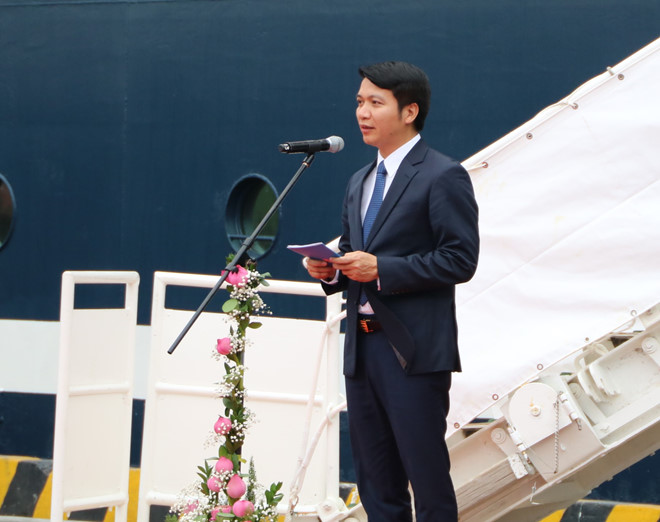 Anh Nguyễn Ngọc Lương, Bí thư T.Ư Đoàn, Phó Chủ nhiệm thường trực Ủy ban quốc gia về thanh niên VN phát biểu tại chương trình đón tàu |