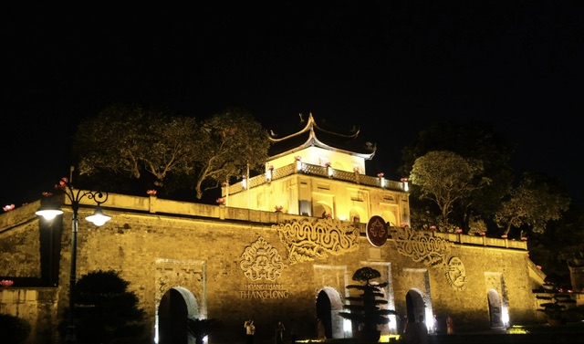 Tại Hoàng thành Thăng Long, các đại biểu được trải nghiệm tour đêm “Đêm Hoàng cung Thăng Long” với nhiều hoạt động hấp dẫn khám phá di sản Hoàng thành Thăng Long-Hà Nội. Không gian Hoàng thành Thăng Long về đêm được trang trí lung linh khiến nhiều đại biểu hào hứng.