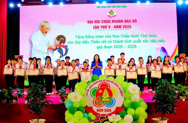 Tại Đại hội, Tỉnh đoàn đã trao tặng bằng khen cho 16 giáo viên Tổng phụ trách Đội có thành tích xuất sắc cho công tác đội và phong trào thiếu nhi giai đoạn 2020 - 2025; trao bằng khen cho 30 đội viên, thiếu niên, nhi đồng tiêu biểu nhất trong phong trào “Thiếu nhi Đắk Nông thi đua làm theo 5 điều Bác Hồ dạy” giai đoạn 2020 - 2025.
