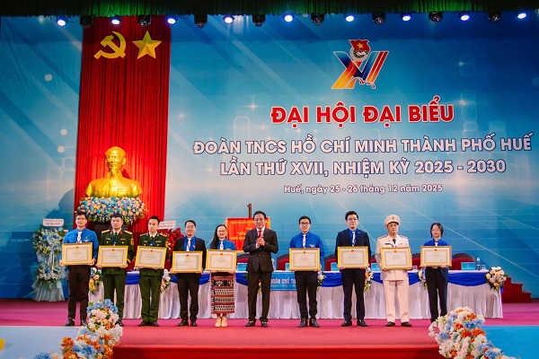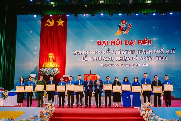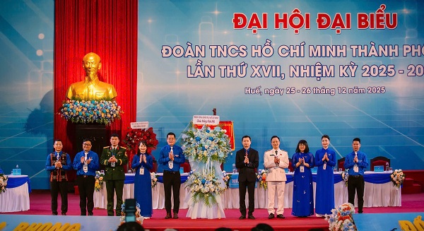 Ngày 26/12, Đại hội đại biểu Đoàn TNCS Hồ Chí Minh TP.Huế lần thứ XVII nhiệm kỳ 2025 – 2030 diễn ra phiên trọng thể với sự tham dự của 291 đại biểu chính thức đến từ 45 Đoàn xã, phường và Đoàn trực thuộc, đại diện cho hơn 75.000 người trẻ trong toàn thành phố.