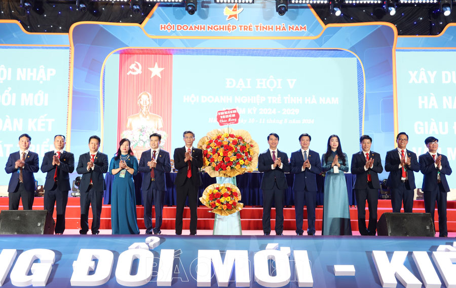 Đại hội cũng chứng kiến nghi thức chuyển giao nhiệm vụ Chủ tịch Hội Doanh nghiệp trẻ tỉnh Hà Nam khoá IV và khoá V.