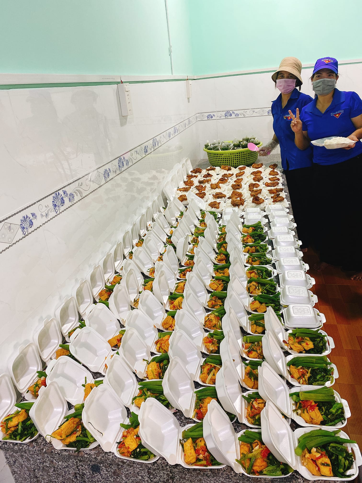 Hàng trăm bữa ăn ấm áp đều đặn hàng ngày được chuyển đến các lực lượng ở tuyến đầu chống dịch và người dân có hoàn cảnh khó khăn trong khu vực cách ly. Để có các suất ăn nóng hổi, đầy đủ chất dinh dưỡng, lực lượng tình nguyện viên đã phải chuẩn bị chu đáo từ rất sớm và mỗi ngày đều thay đổi món ăn với mong muốn thay đổi khẩu vị để đảm bảo bữa ăn tốt nhất cho các lực lượng tại các chốt kiểm soát dịch. Quá trình nấu ăn được đảm bảo tuân thủ các quy định về vệ sinh an toàn thực phẩm, quy định giãn cách và các yêu cầu trong phòng chống dịch.